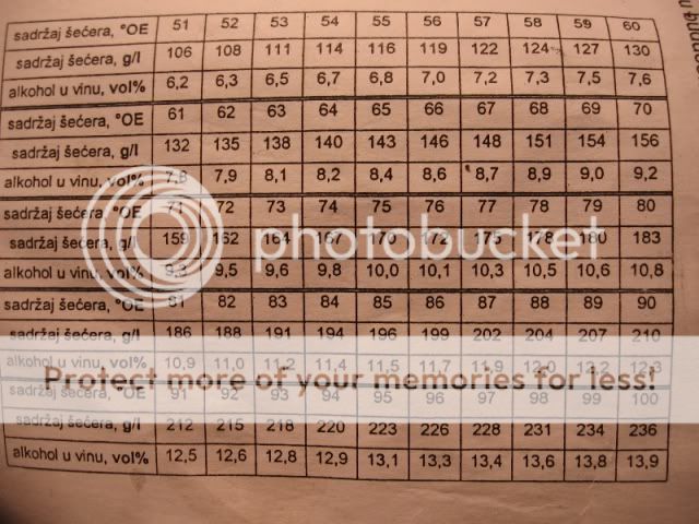 Ево сад гледам ове таблице о количини шећера и очекиваној јачини вина при потпуној ферментацији, па се сетим нечега, и смејем се